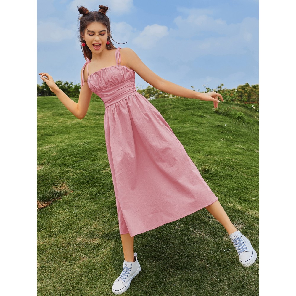 Knot Straps Ruched Bust Zip Back Dress